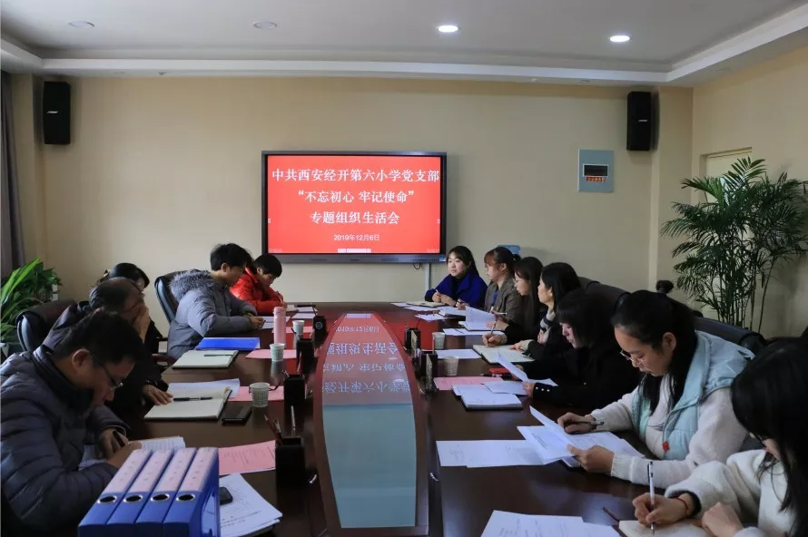 《习近平关于“不忘初心、牢记使命”论述摘编》中有这样一句话:“忠于党、忠于人民、无私奉献,是共产党人的优秀品质。党的事业,人民的事业,是靠千千万万的忠于奉献而不断铸就的。不忘初心,方得始终。”12月6日上午,西安经开六小党支部召开主题教育专题组织生活会,全体党员参加会议。经开区第三督导组饶宏、盛钰、权牧森一行三人列席会议进行全程督导。